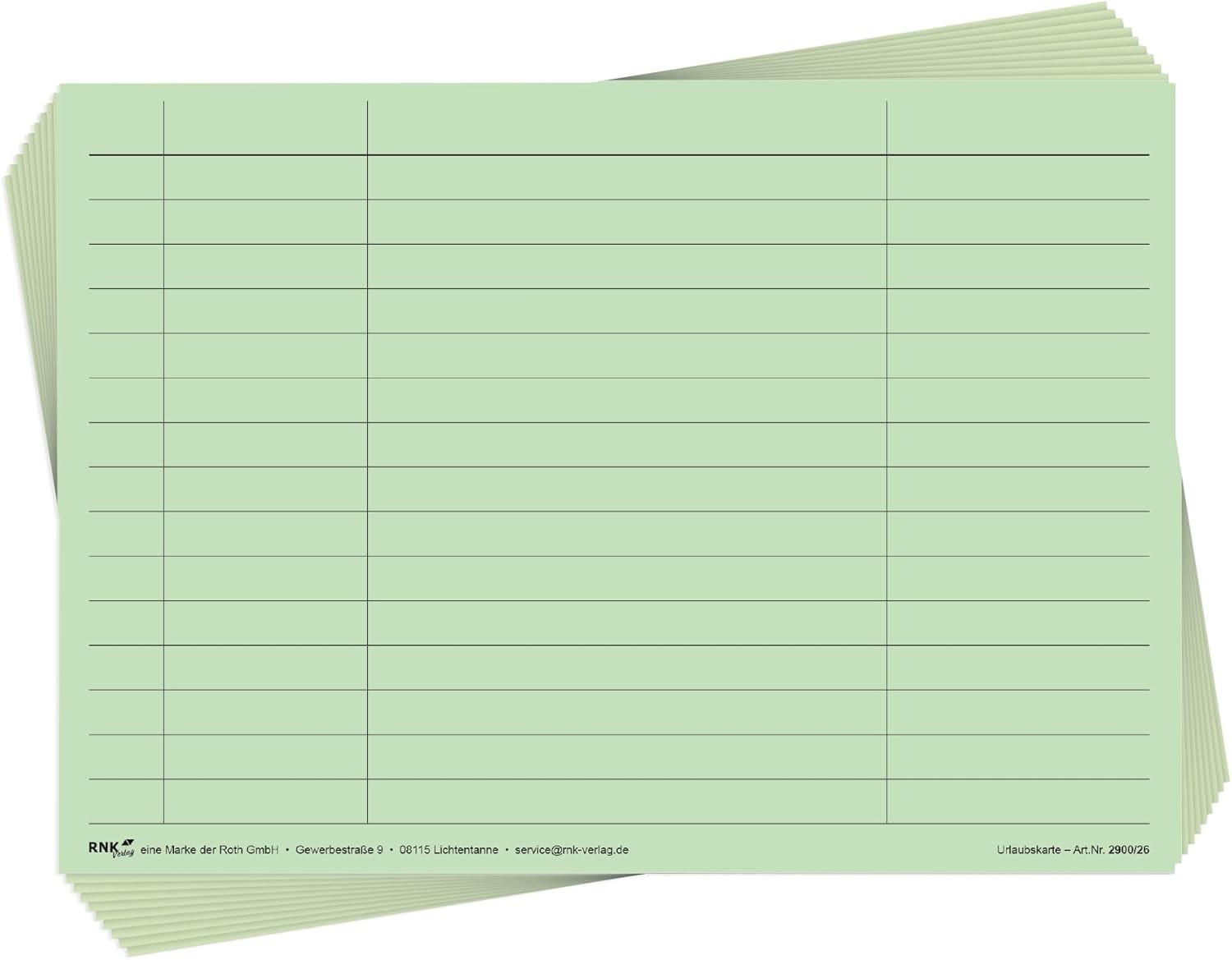 10x RNK Urlaubs- und Fehltagekarte 2026 - Personalplamnung - A5 quer grafisch