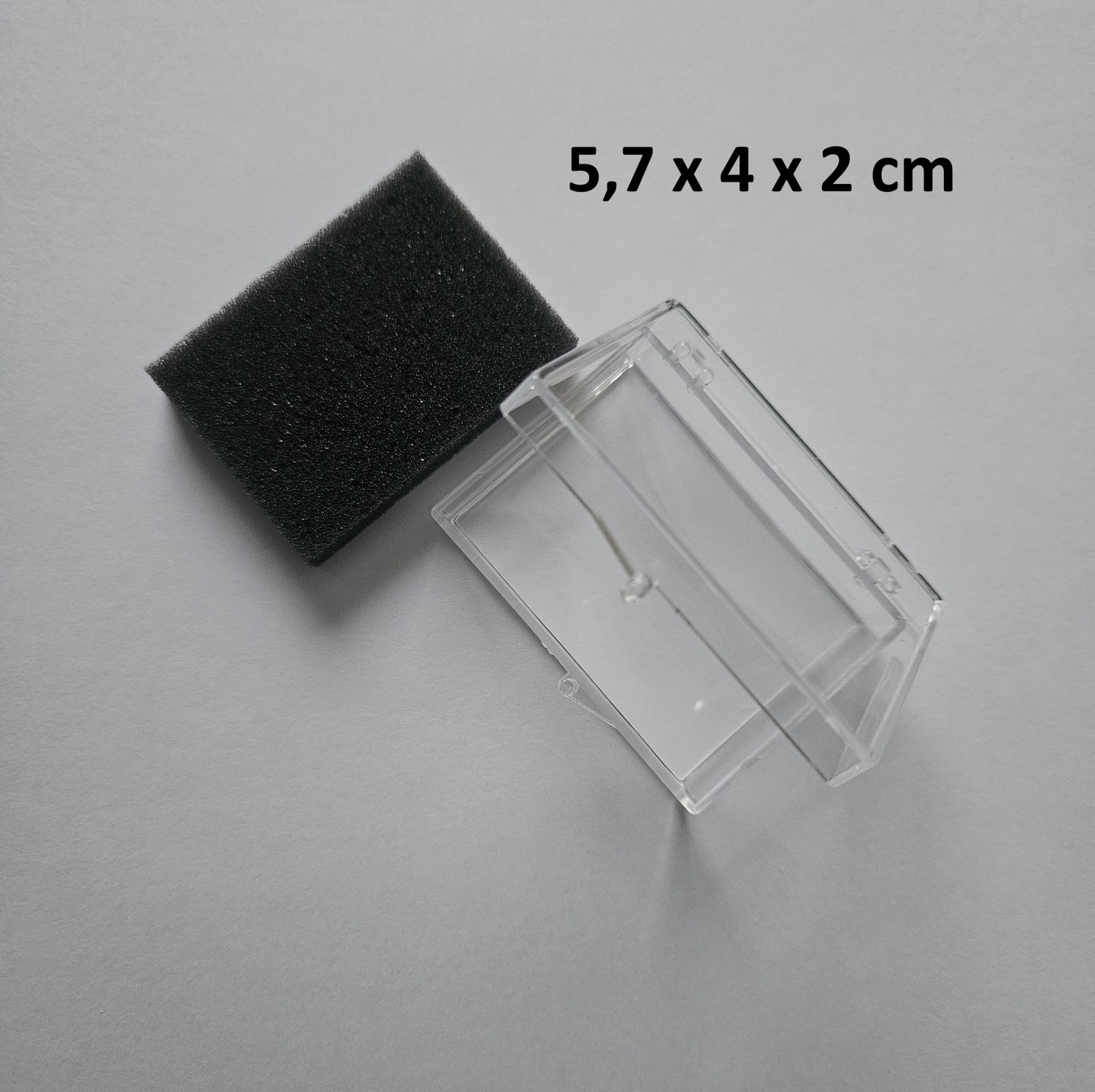 1x Box Schachtel transparent + Schwamm // Organizer für Kleinteile - Aufbewahrungsbox - Maße: 5,7 x 4 x 2 cm