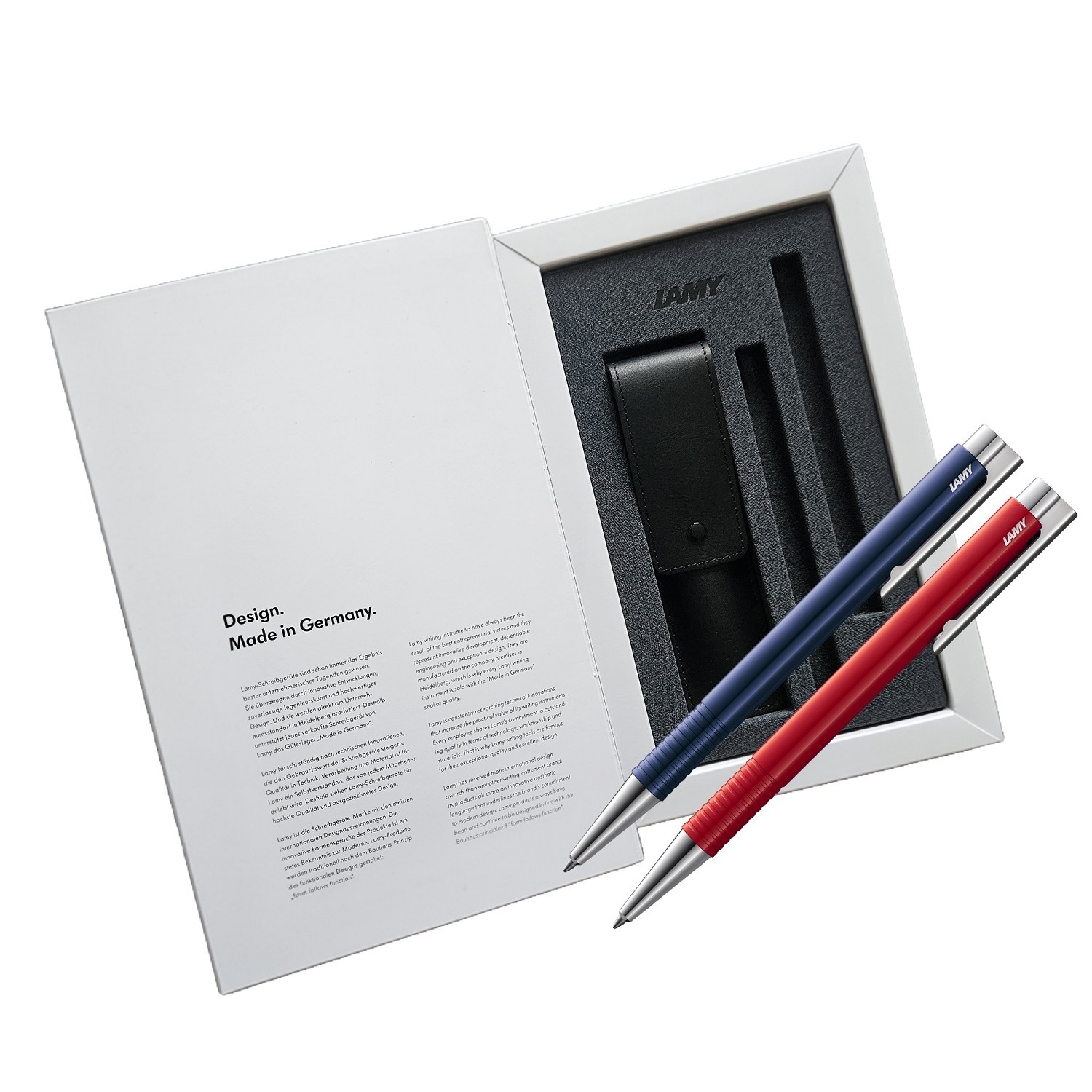 LAMY Logo Kugelschreiber blau + rot – 2 Kugelschreiber + Leder Etui für 2 Schreibgeräte– SET