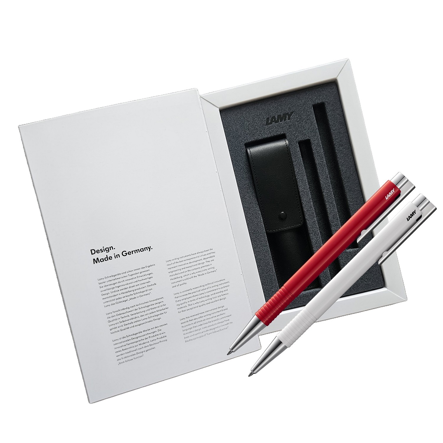 LAMY Logo Kugelschreiber weiß + rot – 2 Kugelschreiber + Leder Etui für 2 Schreibgeräte– SET
