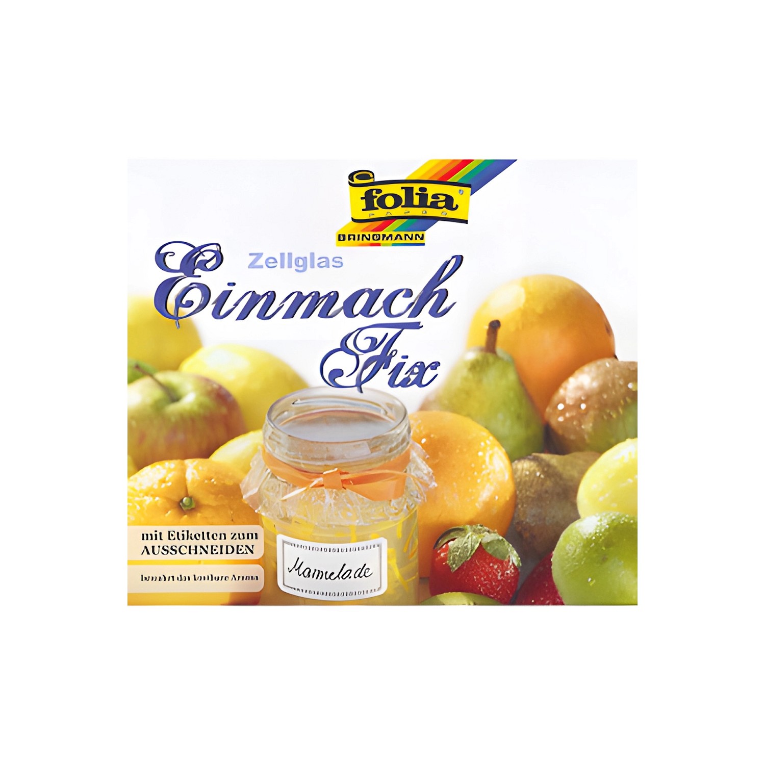 FOLIA Einmach Cellophan/Einmach Fix Zellglas/Einmachfolie - 1 Packung - 3 Bögen je 30 x 60 cm + ETIKETTEN