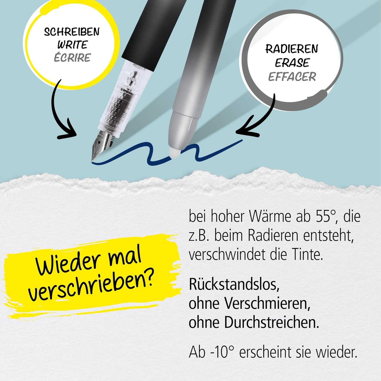 • Schreibfehler einfach wegradieren - thermosensible Tinte (vollständig und ohne Schmieren radierbar)