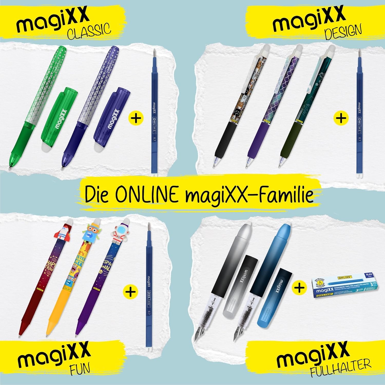 3x Radierbare Tinten Patronen Ersatz MagiXX Füller blau löschbar erasable ONLINE