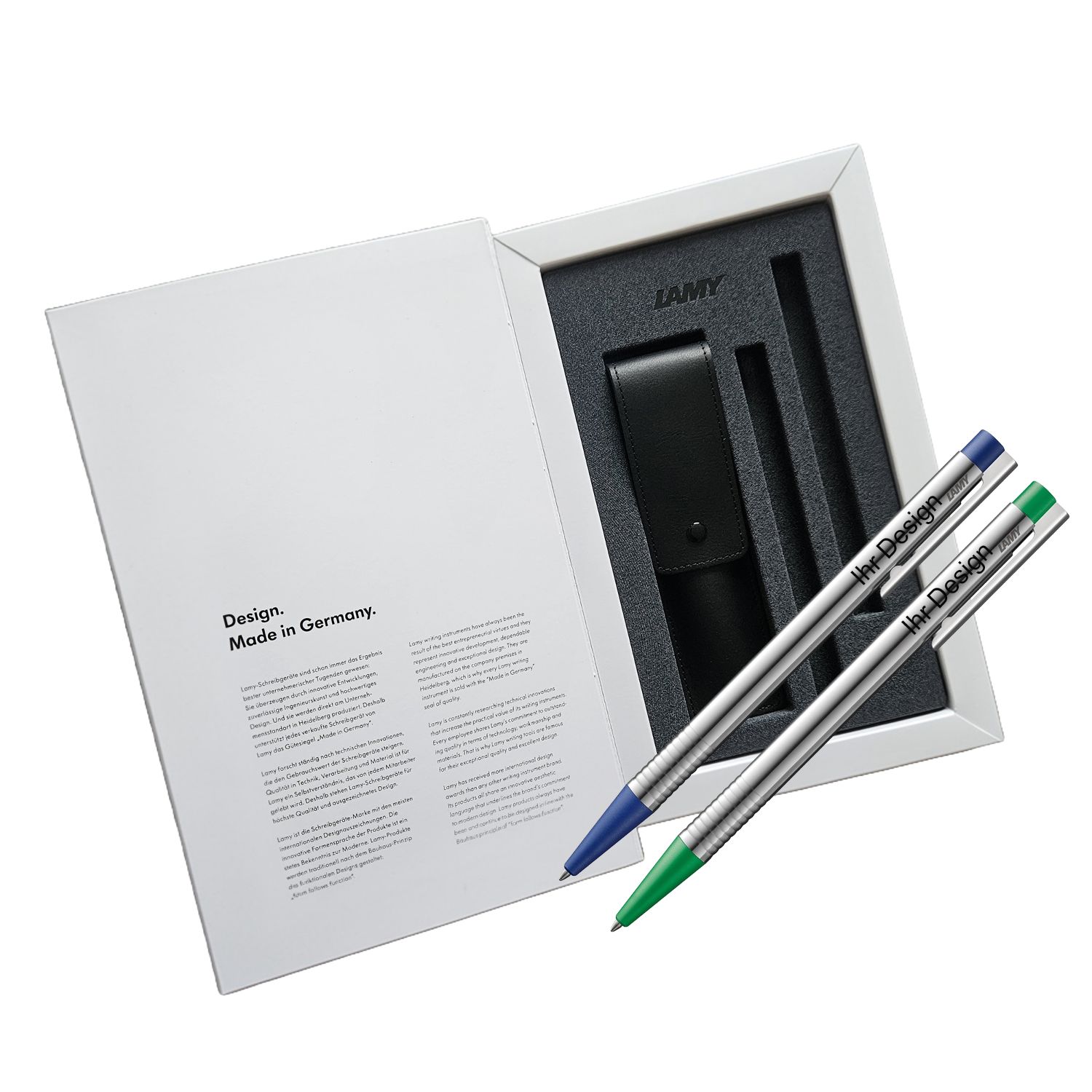LAMY Logo Kugelschreiber blau + grün – 2 Kugelschreiber + Leder Etui für 2 Schreibgeräte– SET