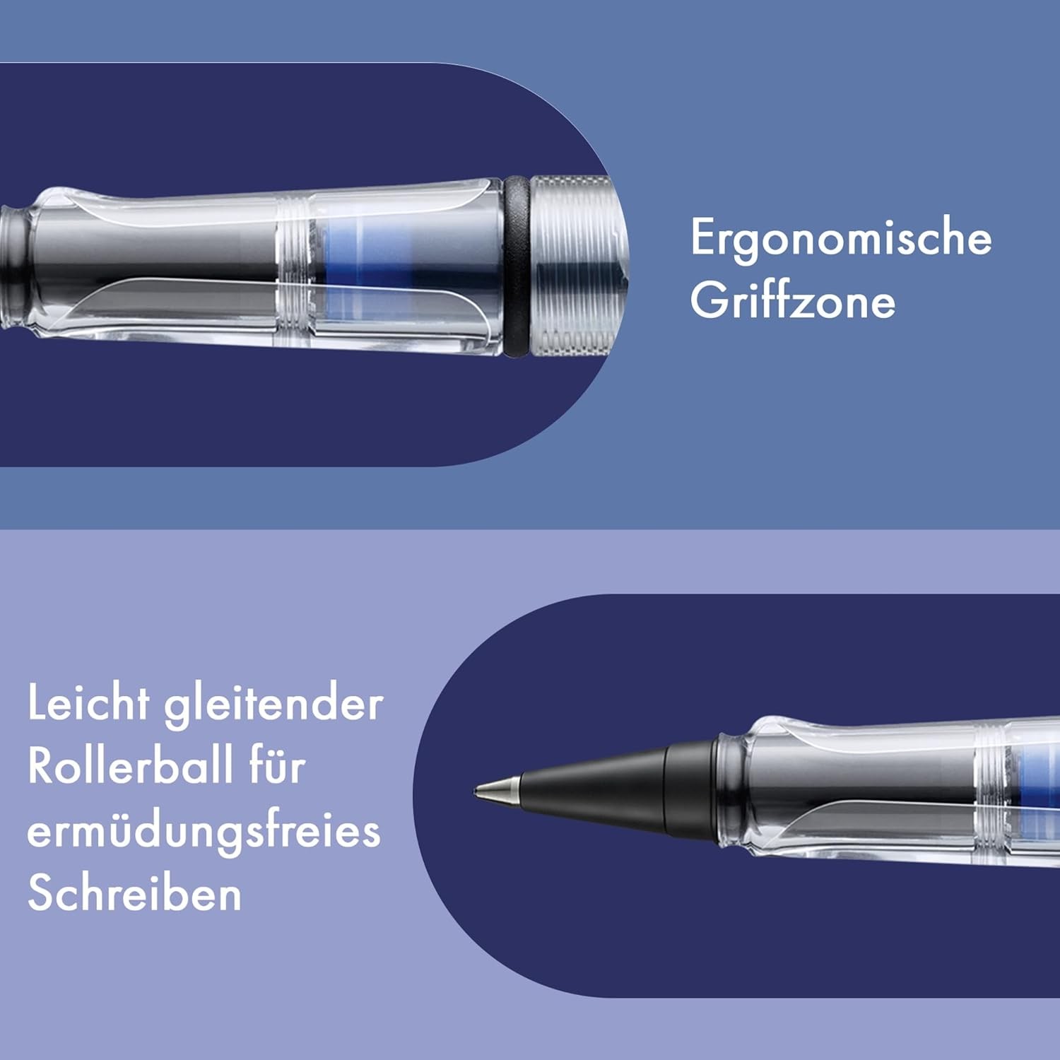 • Innovativen Tintenpatronenroller, der mit Füllhaltertinte schreibt: