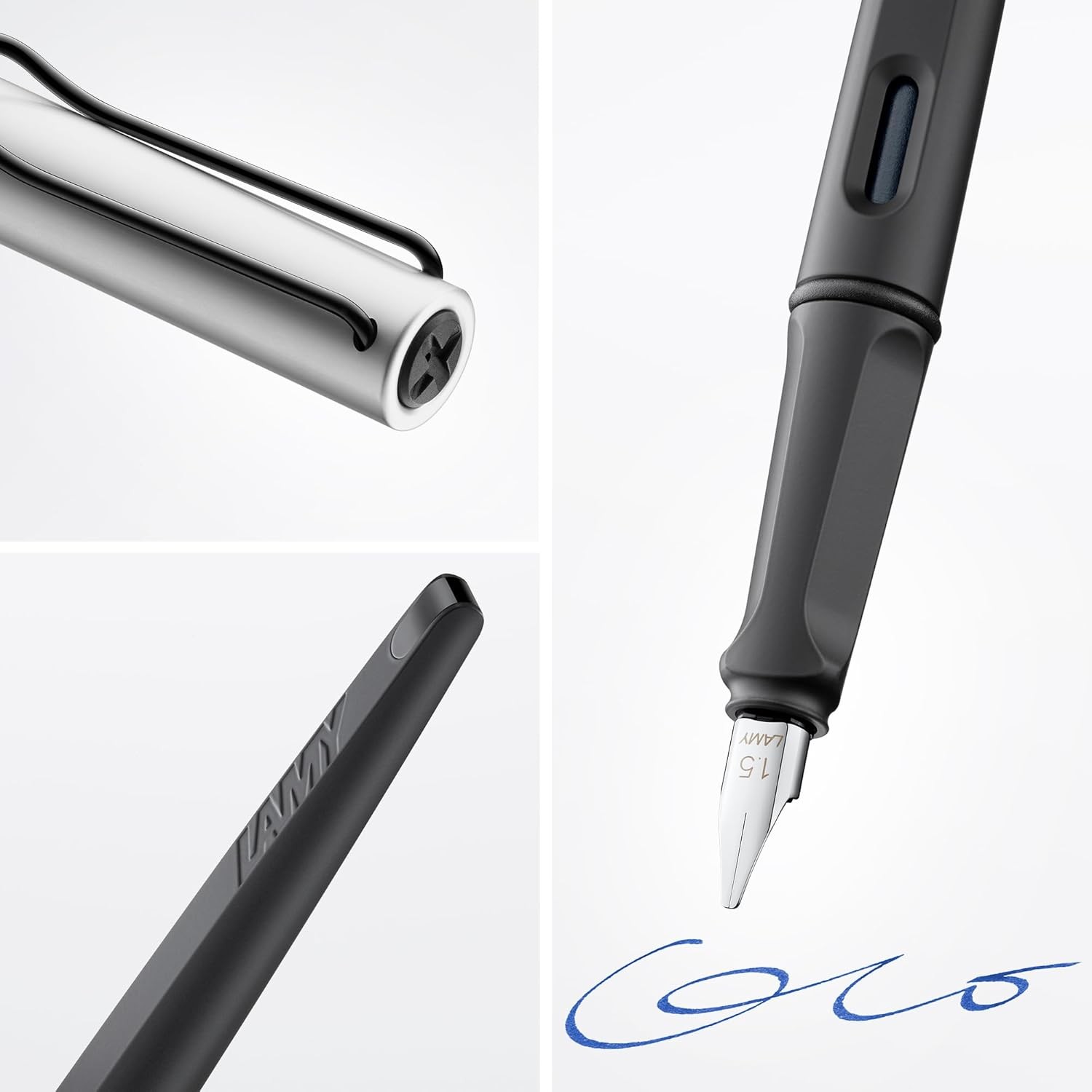 • Der Lamy Joy Füller/Füllfederhalter/Füllhalter ist aus gummiertem Kunststoff (Schaft) in der Farbe Schwarz