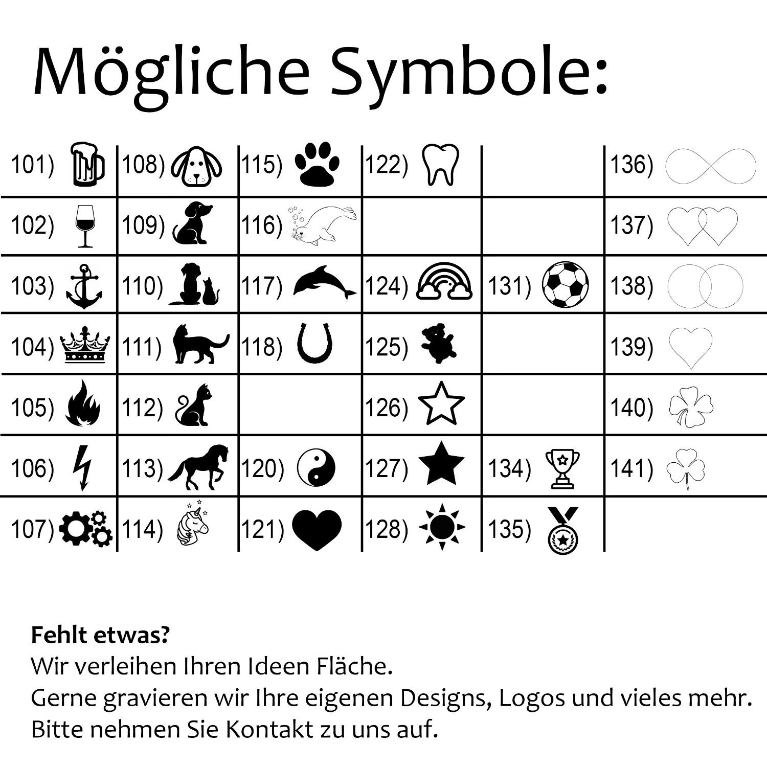 • Ebenfalls können Sie uns gerne vorab ein gezeichnetes Symbol oder einen eigenen Symbolwunsch per Mail schicken.