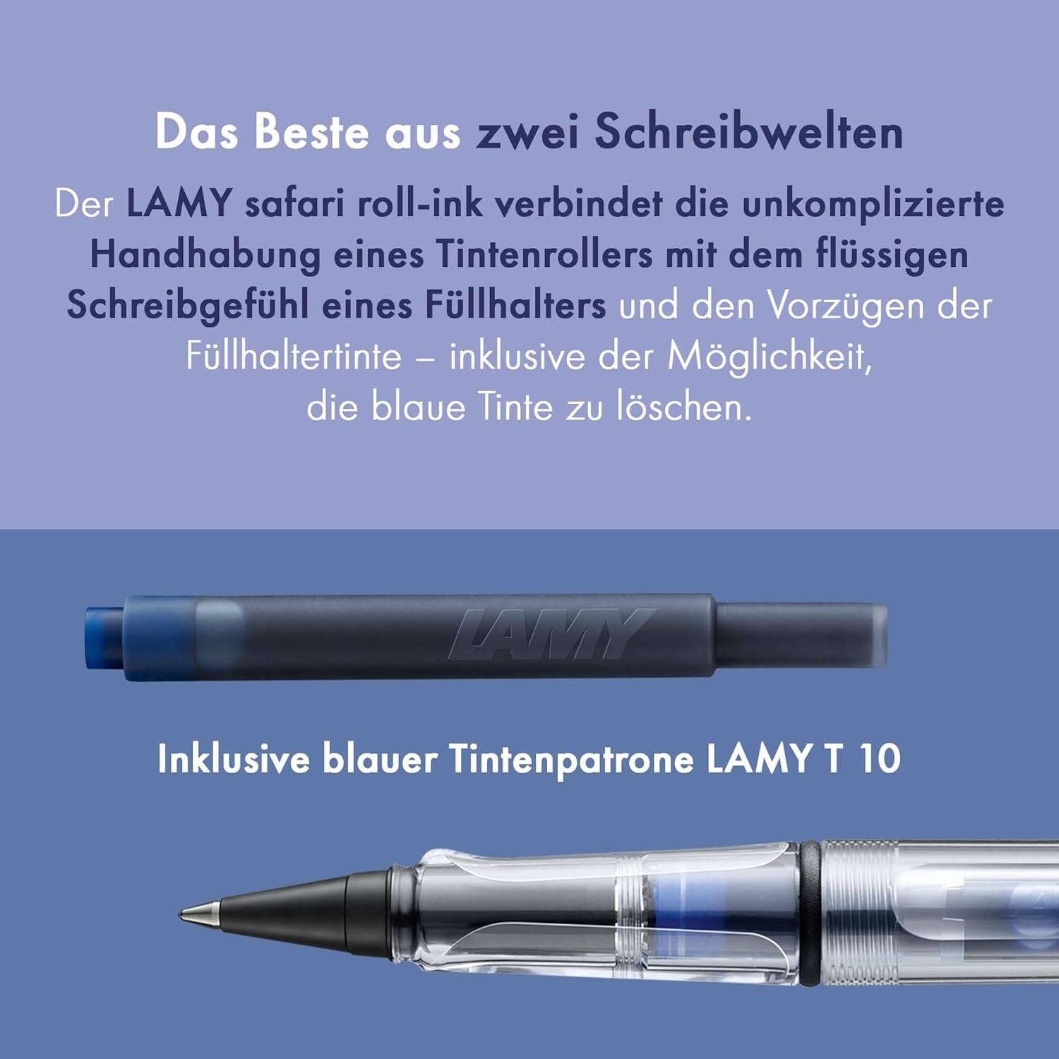 • Neu: Der LAMY safari roll-ink mit blauer Tintenpatrone (Standard Lamy Tinten Patrone T10 Blau) - TINTENPATRONEN ROLLER