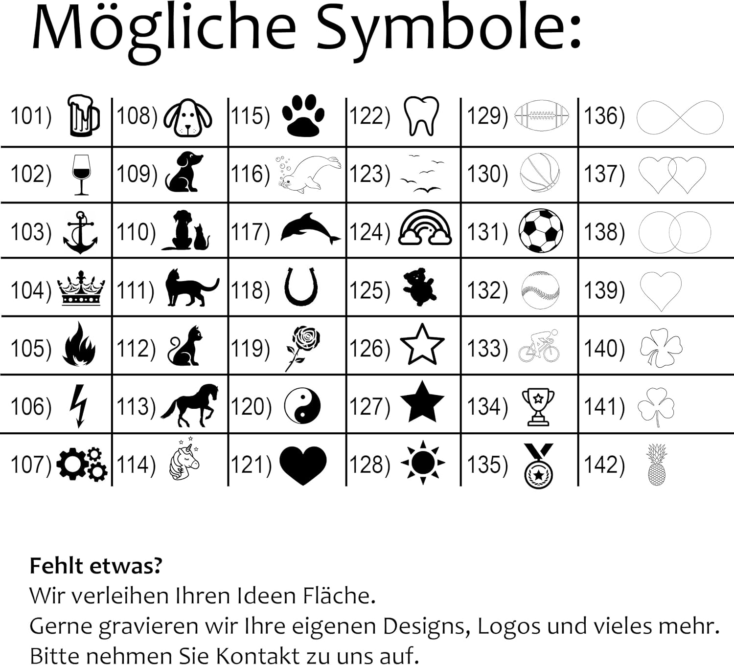 Wir verleihen Ihren Ideen Fläche. Gerne gravieren wir Ihre eigenen Designs, Logos und vieles mehr. Kontaktieren Sie uns dafür bitte per Mail. Wir unterstützen Sie bei Ihrem Design.