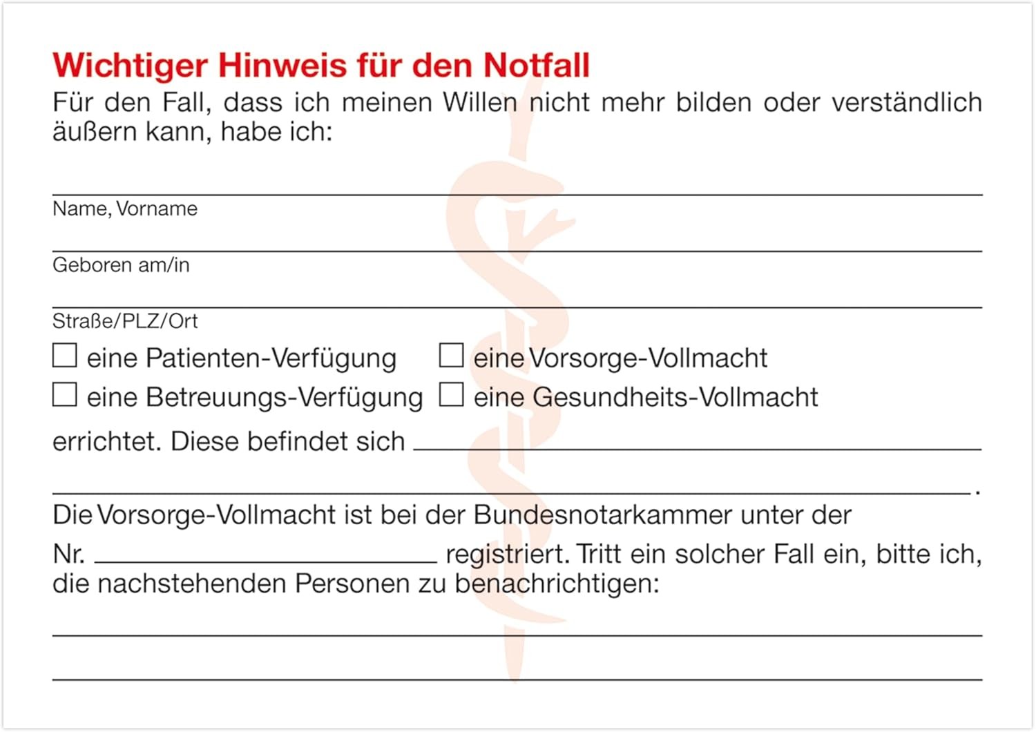 RNK Notfall SET - alle wichtigen Dokumente A7 - Medi Mobil Emergency Card - für unterwegs - 2897