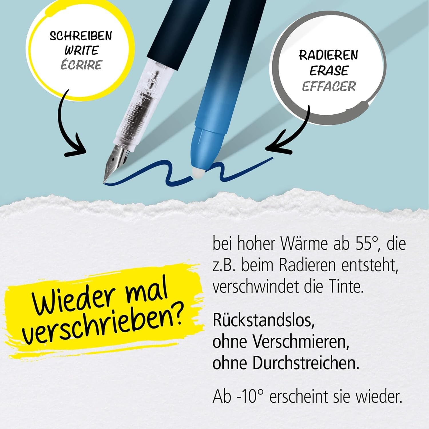 • Löschbare Tinte - ohne Tintenkiller - Der Radierer befindet sich am Ende des Füllers