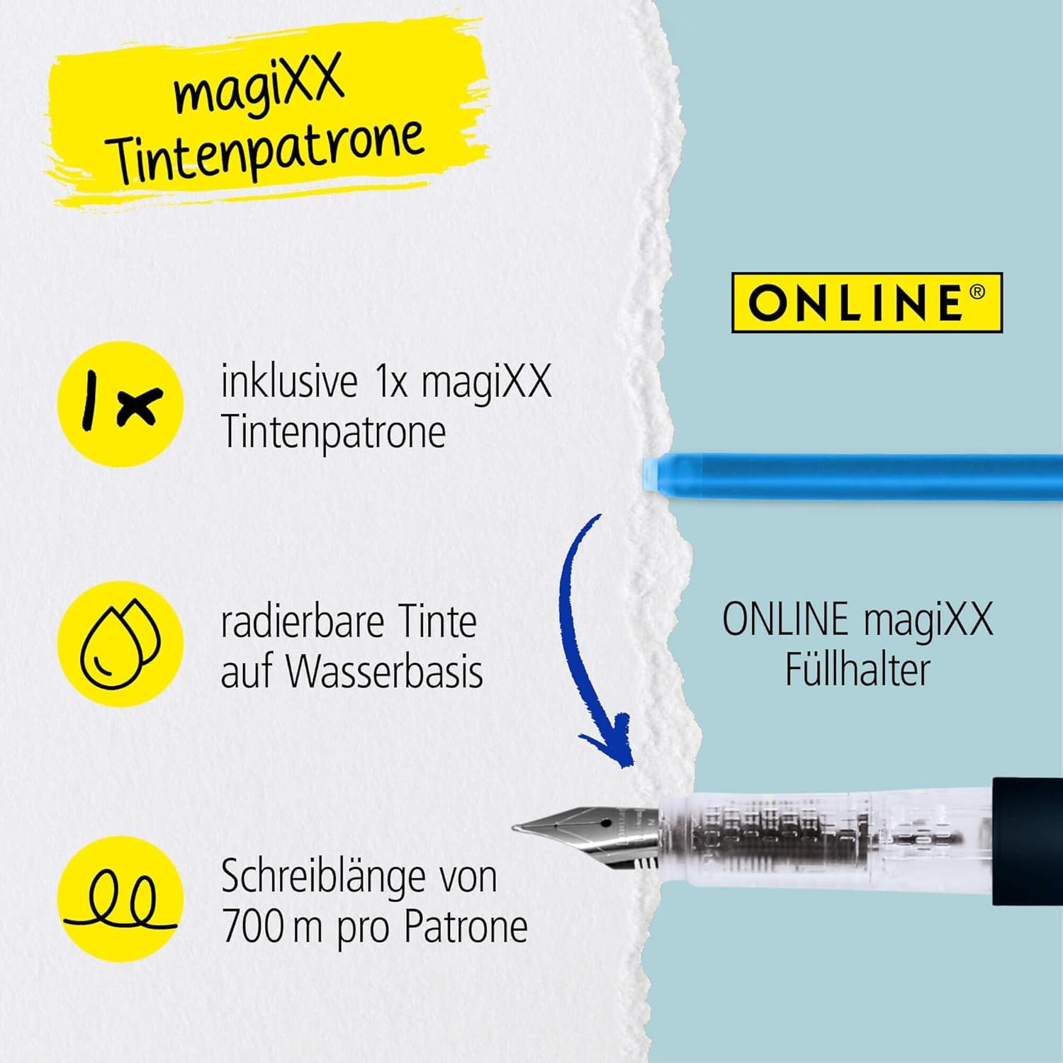 Produktinformationen "Radierbarer Füller für Schule - MagiXX Dunkel Hell Blau + Patrone blau - Online - deep ocean"