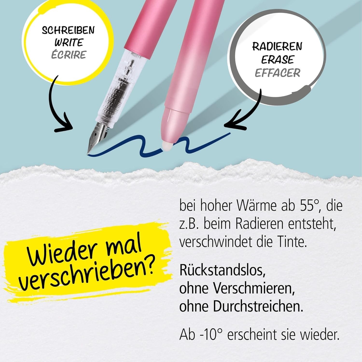 • Löschbare Tinte - ohne Tintenkiller - Der Radierer befindet sich am Ende des Füllers