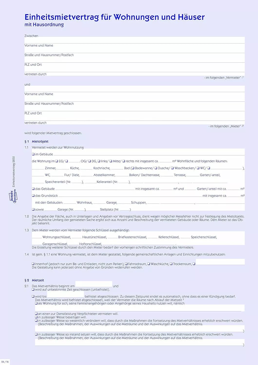 • Zweckform Einheitsmietvertrag für Wohnungen UND Häuser 2850 A4, sechsseitig INKL. Hausordnung - 5 Stück im SET